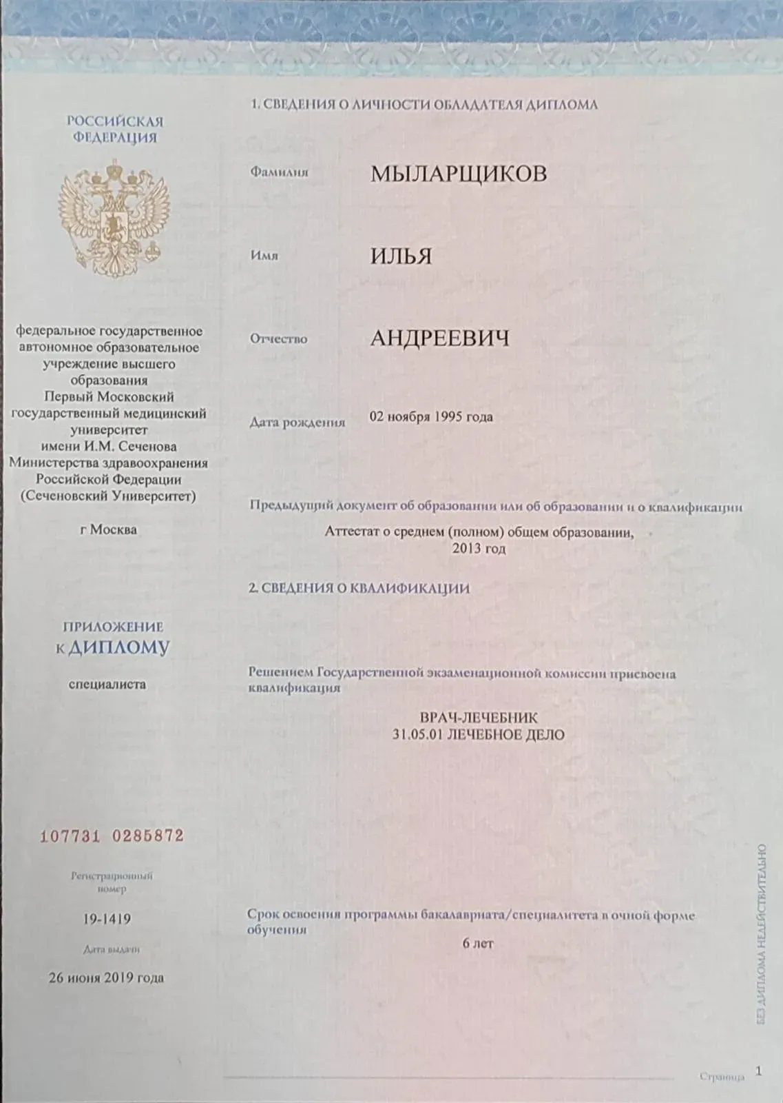 Первый Московский государственный медицинский университет им И.М.Сеченова по специализации психиатр-нарколог